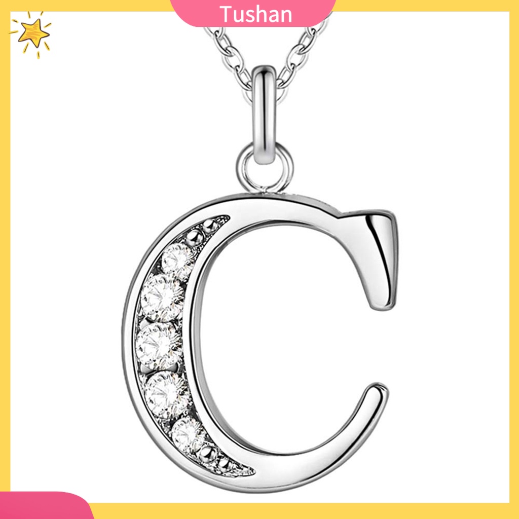 Phụ Kiện & Trang Sức Nữ > Phụ kiện thêm > Mặt dây chuyền và Charm > TUSH_Simple Shiny Zircon 26 English Letters Pendant Women Men Thin Necklaces Jewelry