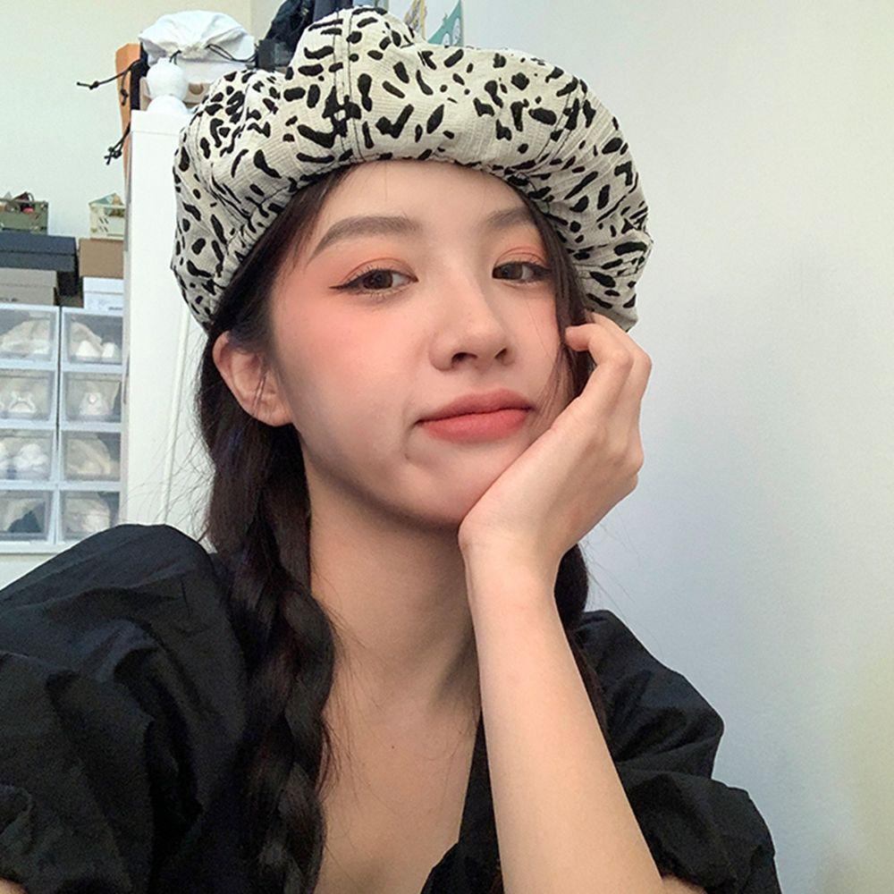 Đóng gói 1 chiếc mũ Phụ nữ Mũ nồi Phong cách Hàn Quốc Mũ họa sĩ Mũ in họa tiết da báo Phong cách Anh Mùa đông Thu Tất cả phù hợp Cô gái Retro Văn học Mát mẻ Ngọt ngào Ấm áp Đơn giản