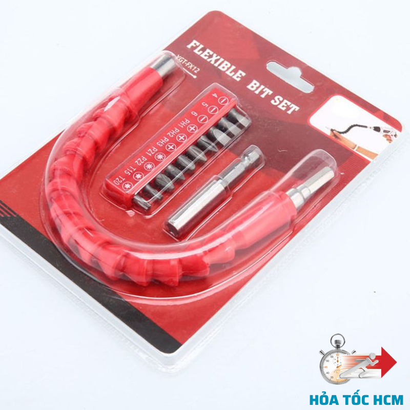 Dây nối dài vặn vít, ống nối mềm vặn vít uốn cong 180 độ , Mũi Bắt Vít này có thể được sử dụng cho máy vặn vít cầm tay, máy khoan dùng pin, cũng có thể được sử dụng cho tuốc nơ vít điện + Dây nối dài vặn vít, ống nối mềm vặn vít uốn cong 180 độ + Bộ Phụ Kiện Kèm Đầu Khẩu + Mũi Bắt Vít này có thể được sử dụng cho máy vặn vít cầm tay, máy khoan dùng pin, cũng có thể được sử dụng cho tuốc nơ vít điện. + Đầu dây linh hoạt được gắn trục lục giác (tay cầm 1/4), chủ yếu được sử dụng trong khung máy tính, tủ điện, nội thất gia đình, thiết bị điện và tuốc nơ vít trong 1 không gian hẹp . - Chất liệu: Nhựa + Kim loại. - Các tính năng: sử dụng cho máy khoan pin, máy vặn vít dùng pin hoặc máy điện, kết nối linh hoạt - Chiều dài: 29cm / 11,42 "(xấp xỉ) - Kích thước đầu kết nối 6.35mm, độ lớn lực chịu tối đa 10N. - Chân lục giác: 6,35mm (1/4 ") - Đầu lục giác bên trong: 6,35mm (1/4 ") - Bộ 12 đầu vít với đủ kích thước và mẫu mã - Bộ 9 đầu Khẩu