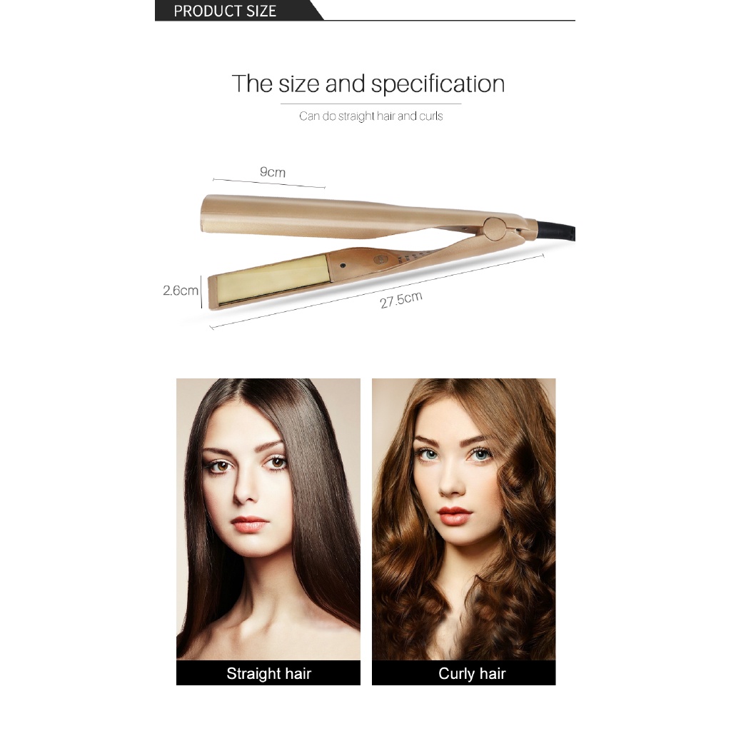 Hướng dẫn sử dụng: Sản phẩm này là một máy duỗi tóc chuyên nghiệp. Tấm phủ gốm cung cấp các lớp hoàn thiện sáng bóng và khỏe mạnh tuyệt vời. Máy tạo mẫu tóc thẳng bóng mượt cho bạn, làm nóng lên đến 100 chỉ cần khoảng 20 giây. Nó có công nghệ làm nóng đồng đều cho tóc duỗi.
