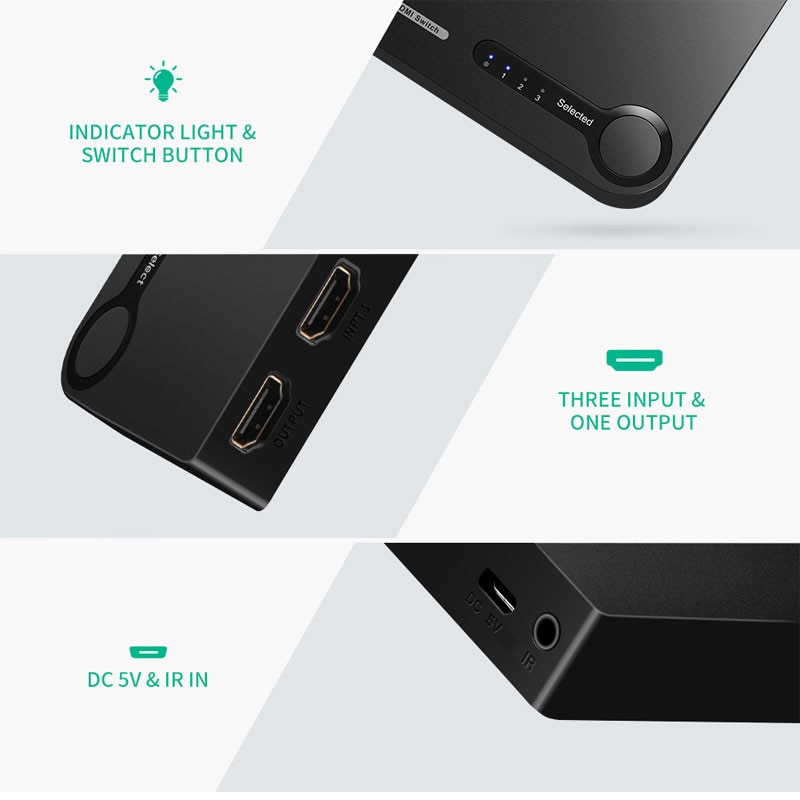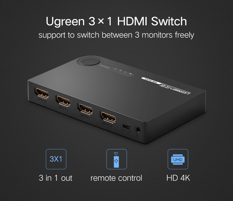 Giới thiệu Ugreen Bộ Chia Cổng HDMI 4K 3 Cổng 3 Trong 1 HD 3D Cho Xbox 360 PS4 PS3 Kèm Công Tắc Điều Khiển HDMI