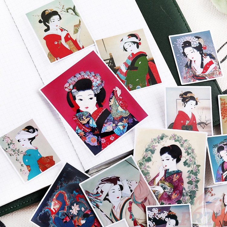 Nhà Cửa & Đời Sống > Trang trí nhà cửa > Giấy và decal dán tường. > ❀ Ukiyoe Beauty - Japanese Showa Kimono Lady Diary Giấy và decal dán tường ❀ 14Pcs/13Pcs DIY Decor Stickers ML07983