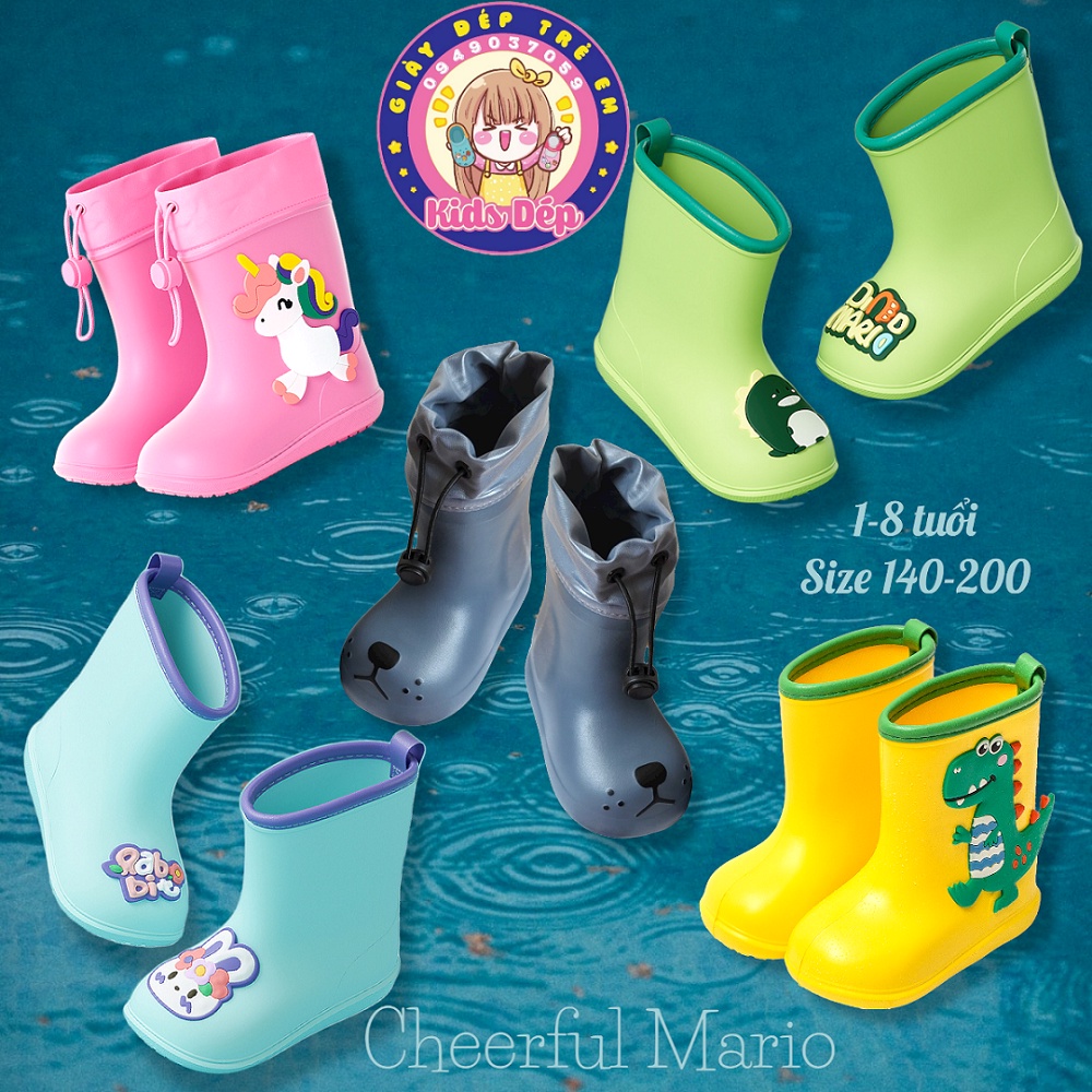 Giới thiệu Ủng đi mưa siêu nhẹ cho bé trai gái 1-8 tuổi Cheerful Mario