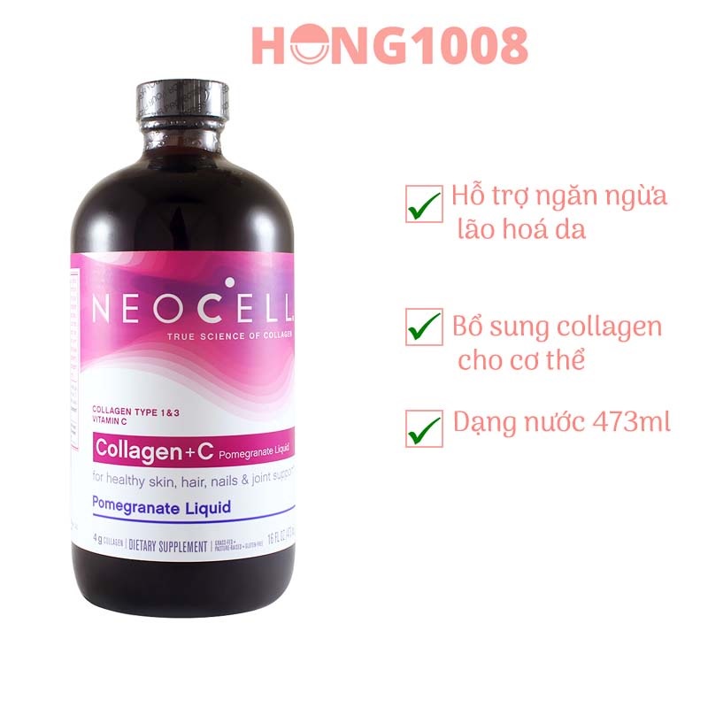 Giới thiệu Nước Uống Collagen Lựu Neocell Collagen + C Pomegranate Liquid 473 ml Mỹ - Mẫu mới
