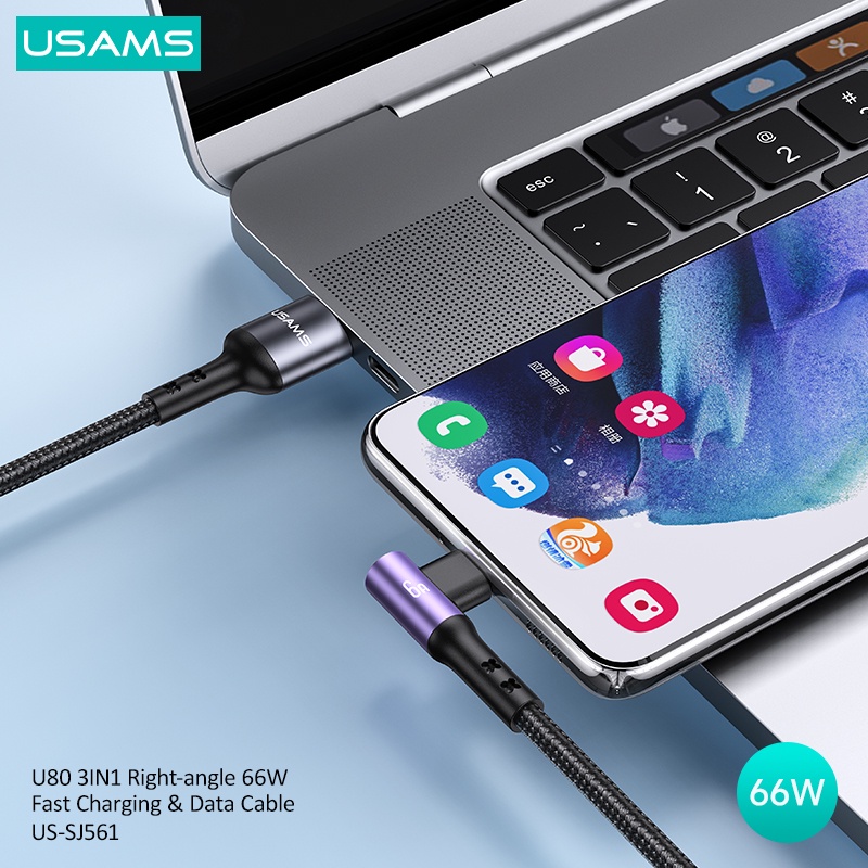 Điện Thoại & Phụ Kiện > Pin Gắn Trong, Cáp và Bộ Sạc > Cáp Sạc và đầu chuyển đổi > Usams Dây Cáp Sạc Nhanh USB Type C 3 Trong 1 66W 1.2M Cho Laptop / Điện Thoại / Máy Tính Bảng