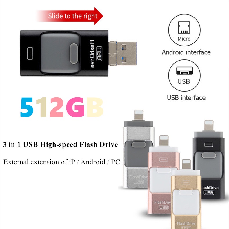 Giới thiệu Usb 3.0 OTG 512GB 3 Trong 1 Cho ĐiệN ThoạI PC