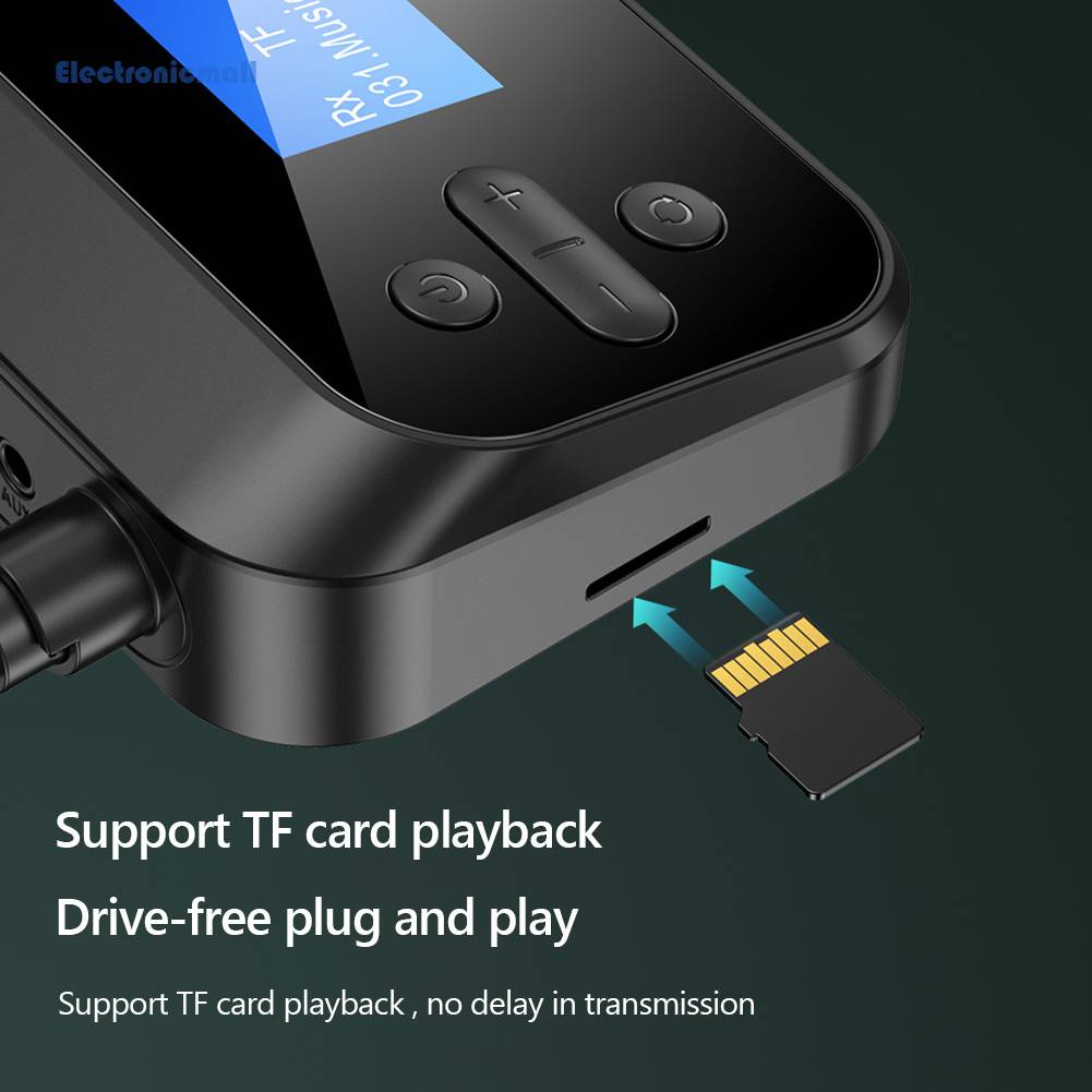 Giắc cắm AUX 3,5 mm Tương thích với Bluetooth 5.0 Bộ điều hợp Dongle Rảnh tay Âm thanh nổi Âm thanh Bộ phát thu không dây cho TV PC Loa ô tô có micrô Tính năng ' 1. Bộ phát và thu tương thích Bluetooth đa chức năng . 2. Truyền phát nhạc không dây - Truyền nhạc trong âm thanh nổi đến tai nghe và loa không tương thích với Bluetooth . 3. Kết nối siêu ổn định - Được trang bị chip 5.0 tương thích với Bluetooth để ghép nối ổn định. truyền nhanh và dải tín hiệu rộng (33 feet.) 4. Tự động kết nối - Bộ thu tương thích với Bluetooth này sẽ tự động kết nối với thiết bị tương thích với Bluetooth được ghép nối cuối cùng vào lần bạn bật nó vào lần tiếp theo . 5. Với ăng-ten tương thích với Bluetooth , truyền âm thanh ổn định hơn , không gây tiếng ồn. đồng bộ hơn - độ trễ thấp . 6. Nâng cấp để hỗ trợ phát lại thẻ TF. 7. Màn hình LCD , có thể hiển thị trạng thái chế độ và lựa chọn tương thích với Bluetooth rõ ràng hơn. 8. Ở chế độ truyền tương thích với Bluetooth , nó hỗ trợ đầu vào 3,5mm quang học kỹ thuật số 'coaxial '3,5mm. tương thích với hầu hết các thiết bị . 9. Lưu ý “ Không có pin tích hợp nên được cấp nguồn bằng sạc USB .