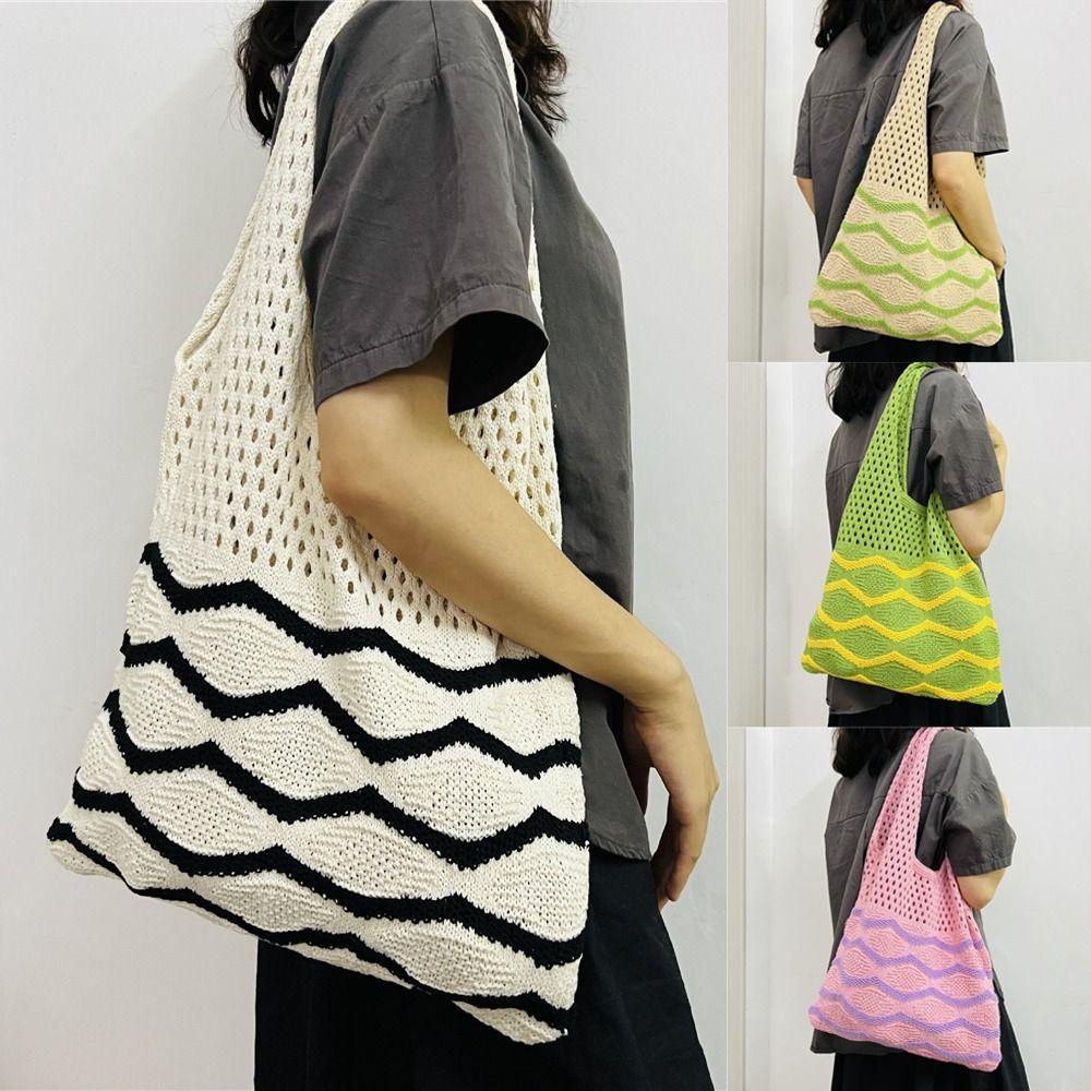 Túi đeo vai Túi đeo chéo dệt kim Túi xách Tote Túi xách rỗng dệt kim Dung tích lớn dành cho nữ Thời trang nữ