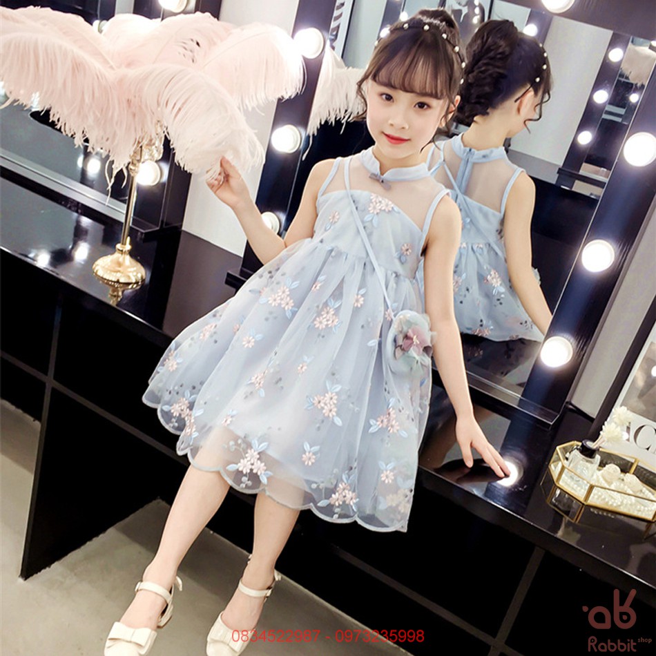 V01 Váy đầm công chúa thêu họa tiết xinh xắn cho bé