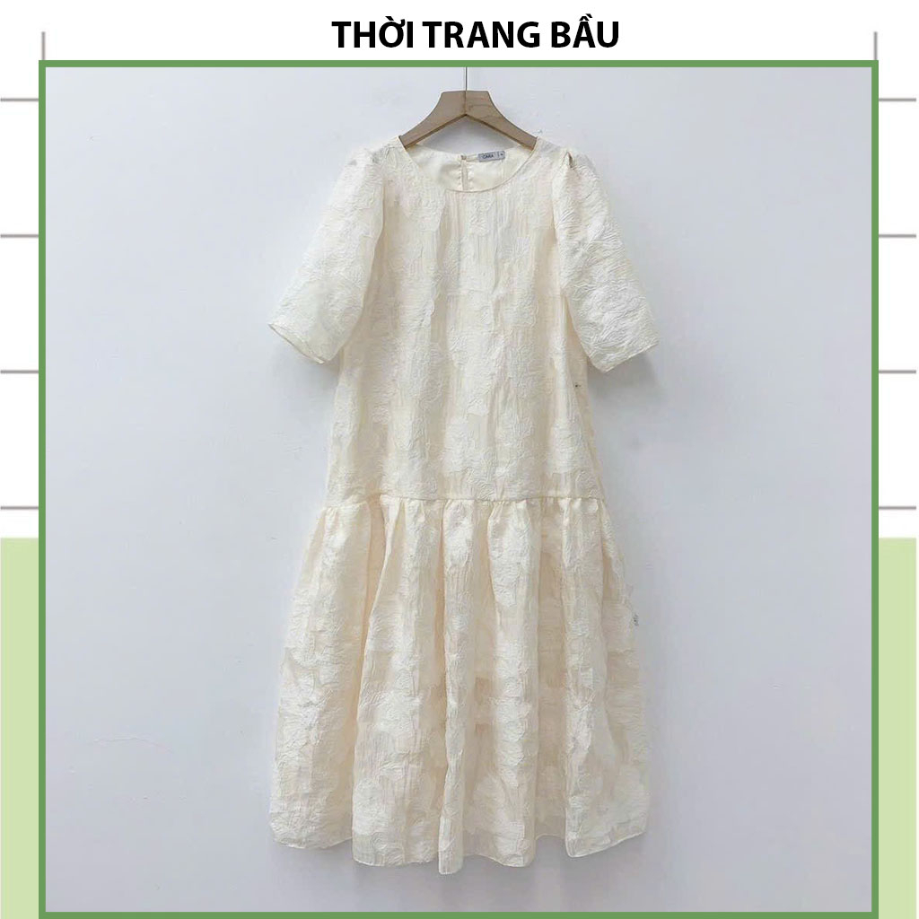Giới thiệu [V349] VÁY BẦU CÔNG SỞ DỰ TIỆ DÁNG TIỂU THƯ-ĐẦM BẦU THIẾT KẾ BABAYDOLL REN HOA NỔI XINH XẮN VOAN TƠ 2 LỚP MỀM MÁT ĐẸP