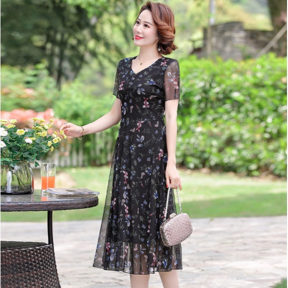 Giới thiệu Váy trung niên cho mẹ sang trọng V74 - Shop áo đầm cho người lớn tuổi mùa hè đẹp cao cấp sang dự tiệc dạ hội Bigsize