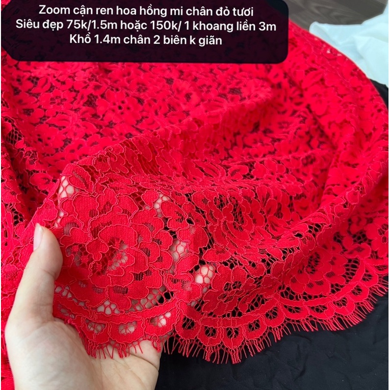 ❤ Vải Ren mi chân đỏ tươi ❤️Ren chỉ mi chân màu hồng sen- may váy suông, áo croptop, set bộ, áo dài ren đẹp mê ly.