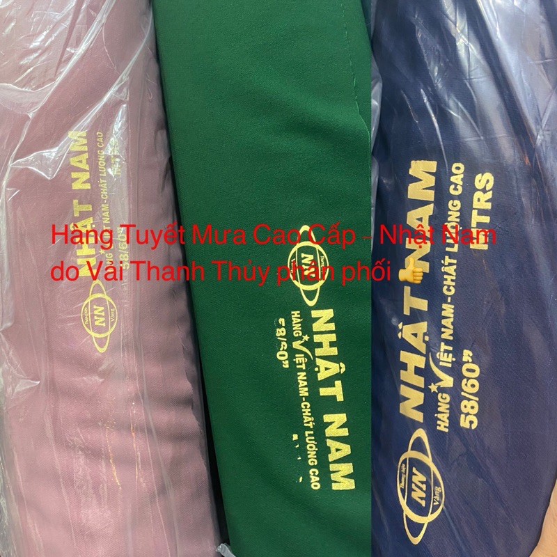 CHÍNH HÃNG HÀNG CÔNG TY NHẬT NAM - VẢI THANH THỦY PHÂN PHỐI CHÚ Ý : SHOP CÓ 2 BẢNG MÀU ( HƠN 35 MÀU CHO KHÁCH LỰA CHỌN Giá vải hiển thị là cho 1m x 1m5 ( khổ vải 1m5 ) , vải này shop có bán 1m5 x 1m5 ( khổ vải 1m5 ) - XIN LƯU Ý: Vải Tuyết Mưa NHẬT NAM của shop là hàng công ty chính hãng Việt Nam, không phải là vải hàng kí , vải lỗi, vải khúc. Chất lượng các lần mua như nhau, tiền vải không đáng bao nhiêu, tiền may thì lại rất cao, chúc các bạn có sự lựa chọn hợp lý. Mô tả sản phẩm: Vải Tuyết Mưa Nhật Nam mặt vải mịn hơn Tuyết Mưa ATC , sới vải và mặt vải của 2 sản phẩm khác nhau, cho nên mức giá khác nhau, tùy vào khách thích sản phẩm nào và may quen sản phẩm nào thì lựa chọn nhé . - Chất liệu cấu thành vải tuyết mưa có thành phần từ các sợi như: ranyon, nylon, polyester và spandex. Nhờ vải có thành phần từ “sợi Spandex” nên loại vải này có tính đàn hồi rất tốt, có giãn cao, không quá mỏng cũng không hề quá dày cùng với độ bền màu cao dù giặt ở nhiệt độ nào.Đây là một trong những loại vải luôn có độ đứng và nếp của sản phẩm.