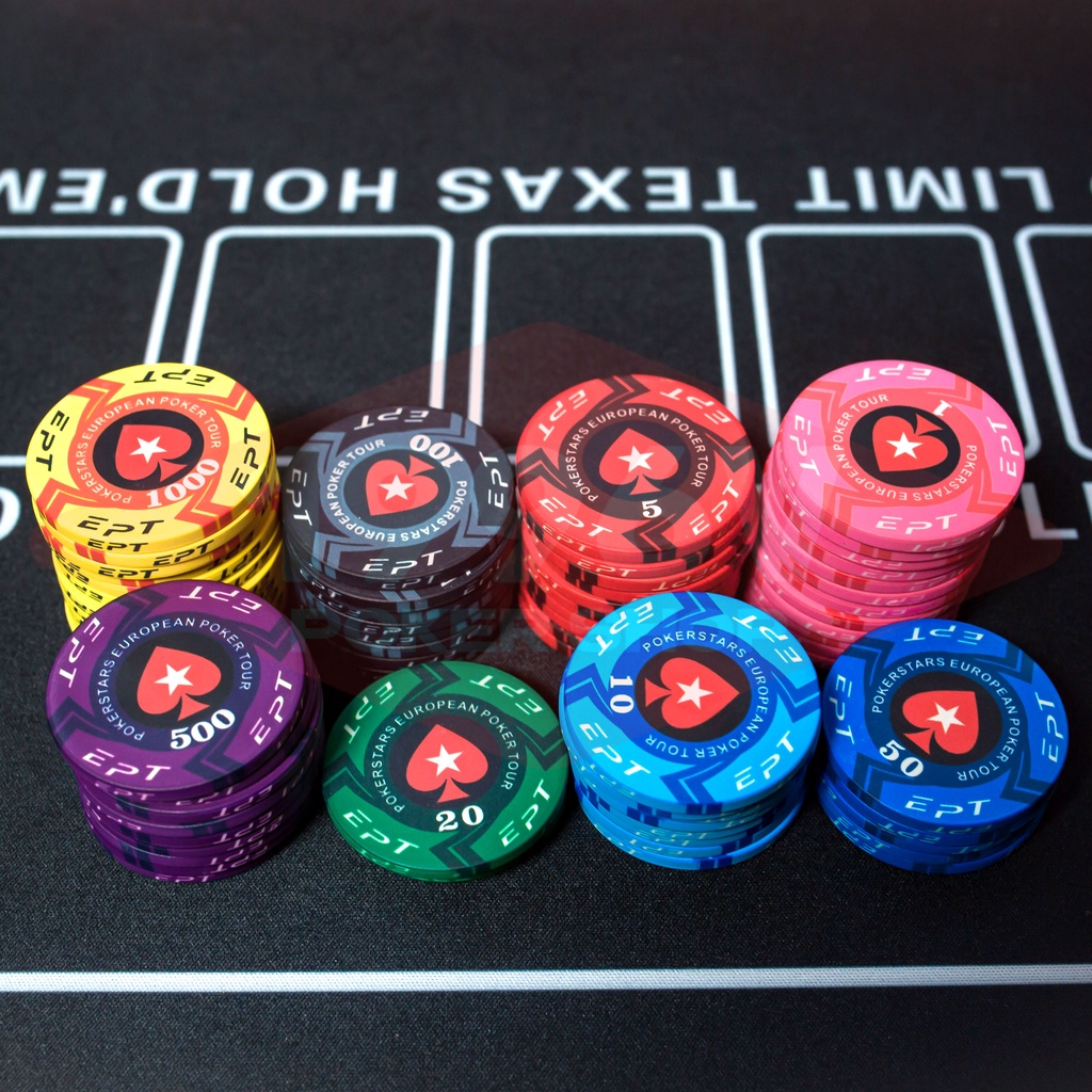 Ưu điểm chip EPT European Poker Tour có số: - Phỉnh Poker có chất liệu Gốm Ceramic. Đảm bảo phỉnh poker có độ bền cao, chống nước, chống sứt mẻ cho phỉnh. Chất liệu Gốm Ceramic khiến phỉnh poker có âm thanh trầm, loại bỏ cảm giác chói tai khi shuffle phỉnh - Trọng lượng mỗi chip EPT European Poker Tour chỉ có 10g, tạo cảm giác thoải mái, tinh tế cho người sử dụng. - Phỉnh Poker có thiết kế hình ảnh bắt mắt, trẻ trung, màu sắc đa dạng. Số trên chip poker to, rõ ràng, dễ phân biệt. - Các góc cạnh, rìa, bề mặt chip EPT European Poker Tour được gia công cực kì cẩn thận, không chi tiết thừa. Khi stack phỉnh poker không xảy ra hiện tượng rung lắc, đổ.