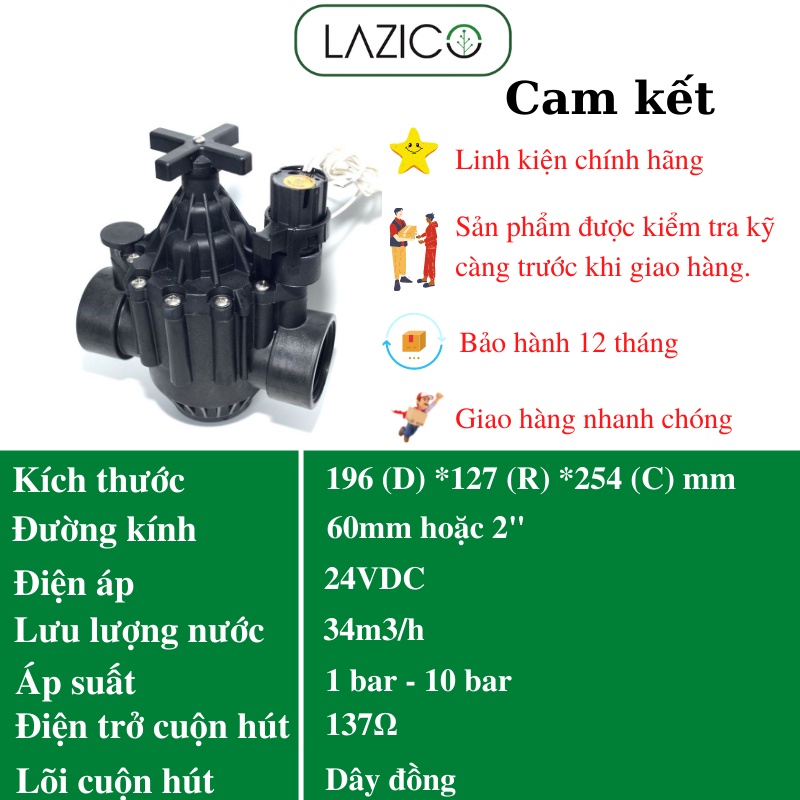 Video giới thiệu sản phẩm Van điện từ 24vdc phi 60, van điện từ 60 ngoài trời LAZICO VT60. Nguồn: Shopee.