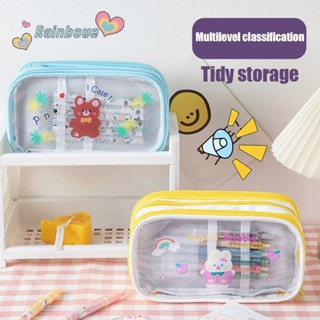 Túi Đựng Bút Chì Cỡ Lớn Có Khóa Kéo Họa Tiết Hoạt Hình Cầu Vồng Dễ Thương Cho Bé