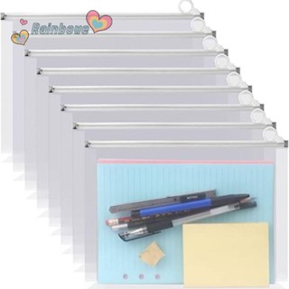 RAINBOW Set 8 Bìa Nhựa Đựng Tài Liệu Khổ A5 Chống Thấm Nước Có Khóa Kéo Tiện Lợi