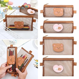 Túi lưới đựng bút màu nâu trong suốt họa tiết gấu dễ thương