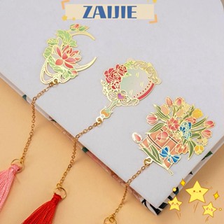 ZAIJIE24 Thẻ Đánh Dấu Trang Sách Bằng Đồng Thau Phối Tua Rua Phong Cách Retro