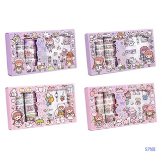 Hộp 10 Cuộn Băng Dính Kèm 10 Tờ Nhãn Dán Trang Trí Thủ Công DIY