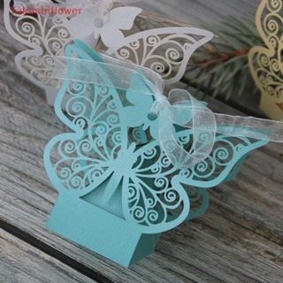 Set 10 Hộp Đựng Kẹo Cưới Thiết Kế Rỗng Họa Tiết Bươm Bướm Kèm Dây Ruy Băng Xinh Xắn