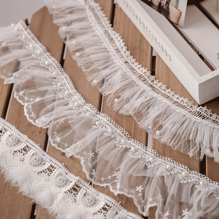 Dây ruy băng ren lưới đính ngọc trai giả xếp ly dài 1 yard dùng trang trí váy cưới DIY