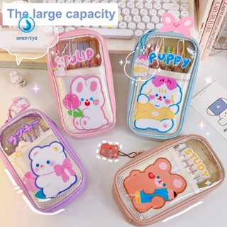 (Shop Amart) Hộp Đựng Bút Chì Trong Suốt In Hình Hoạt Hình Chống Nước Sức Chứa Lớn