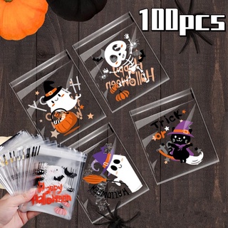 Set 100 Túi Đựng Bánh Kẹo Halloween Tự Dính 10x10cm