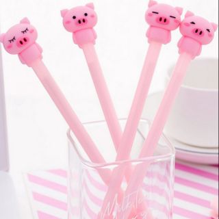 Bút bi mực nước màu đen, bút gel nước heo hồng dễ thương