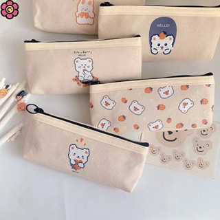 Túi đựng bút vải canvas sức chứa lớn in họa tiết gấu hoạt hình đáng yêu tiện lợi