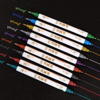 Set 10 Bút Lông Hai Đầu Màu Sắc Lấp Lánh Ánh Kim