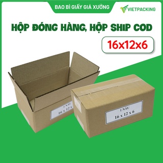 Hộp carton giá rẻ, hộp giấy gói hàng 16x12x6 tiện lợi, giấy cứng, vuông vức