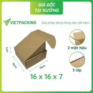 16x16x7 - 25 hộp carton nắp gài hông đẹp, vuông vức, giấy cứng V1026
