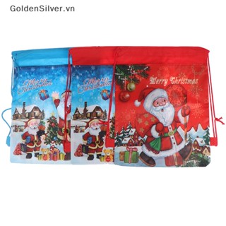 Túi Dây Rút Đựng Quà Giáng Sinh Họa Tiết Ông Già Noel Màu Vàng Bạc
