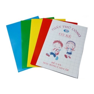 Giấy thủ công có kẻ Decal màu bóng cao cấp Vũ Hoàng loại to khổ A5 tập 5 tờ