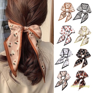 Khăn choàng cổ dài bằng lụa họa tiết hoa phong cách Hàn Quốc cổ điển cho nữ