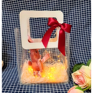 túi nhựa trong suốt quai da độc đáo, túi đựng quà xinh xắn phù hợp các dịp