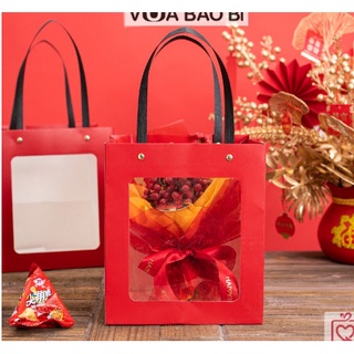 Túi đựng quà tặng cửa sổ trong suốt màu đỏ, trắng làm set quà tặng biếu nhiều dịp