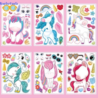 Bộ 6 Miếng Dán Hình Kỳ Lân Màu Hồng Dễ Thương Dùng Trang Trí DIY Mới