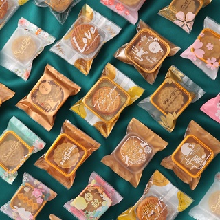 Set 100 Túi Nhựa Đựng Bánh Trung Thu / Kẹo / Bánh Trung Thu Họa Tiết Thỏ / Hoa Hoạt Hình Thủ Công Dễ Thương