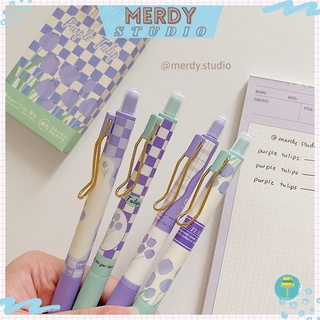 Bút gel Mura mực đen ngòi kim cao cấp - Purple Tulips