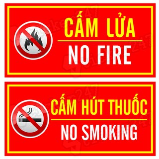 Tấm Decal Dán Biển Báo Cấm Hút thuốc - Cấm Lửa - Cán màng bảo vệ chống nước - Tháo không để lại keo | Sticker 247