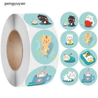 Bộ 500 Miếng Dán Tròn Họa Tiết Mèo Hoạt Hình Dễ Thương Dùng Trang Trí