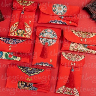 Túi gấm vải đỏ họa tiết cổ điển lì xì may mắn cho năm mới phong cách cổ trang sáng tạo
