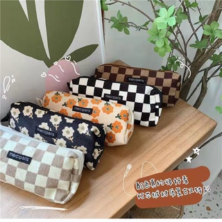 Túi Đựng Bút Vải Nhung Kẻ Cỡ Lớn Họa Tiết Hoa Cổ Điển Cho Học Sinh Ốp