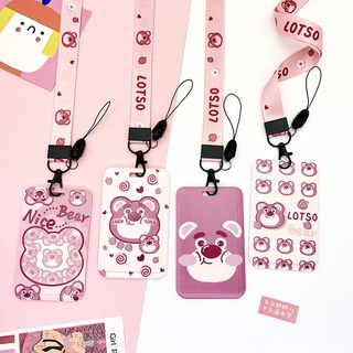 Vỏ Nhựa Đựng Thẻ Truy Cập Hình Gấu Dâu Tây Có Dây Dài Bảo Vệ