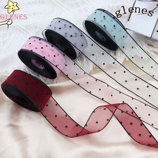 Cuộn Dây Ruy Băng Vải Voan Phối Ren Chấm Bi Đen Nhiều Màu Dùng Gói Quà DIY