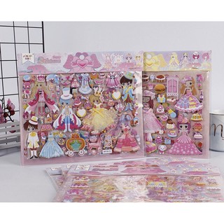 Sét 2 tờ sticker nổi 3D công chúa thay trang phục siêu xinh