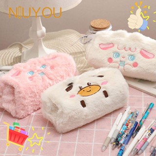 NIUYOU Túi Đựng Bút Bằng Vải Canvas Phối Lông Xù Xinh Xắn