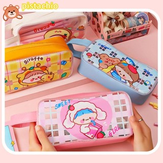 PISTA Túi Đựng Bút Bằng Nhựa PVC Trong Suốt In Hoạt Hình Dễ Thương Cho Học Sinh